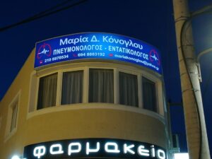 - Φωτεινές Επιγραφές: Εξαιρετικά ορατές, ημέρα και νύχτα, χάρη στον φωτισμό LED ή νέον.