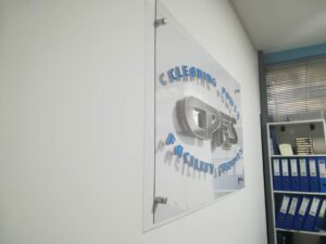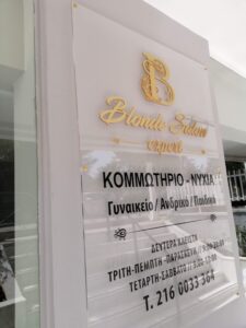 Plexiglass επιγραφή με αποστάτες & ψηφιακή εκτύπωση